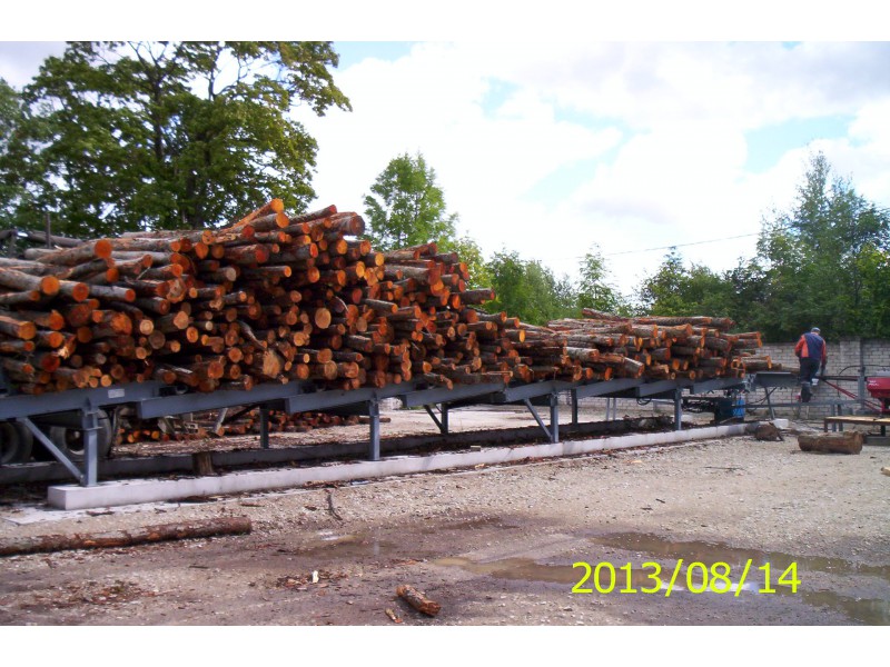 Log deck is unique. It works as step feeder, but with long steps. Its function is superior chain deck to feed in good order. It provides higher availability. Log deck is build in 8 meter length. Simple deck load 15 ton. Log deck added two 8 meters sections to 16 meter. It loads 30 ton.